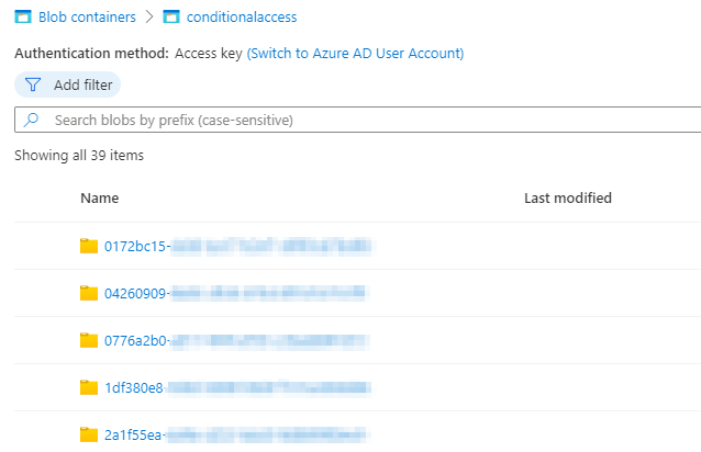 In this example we will use Azure Sentinel to detect any new policies being created, policies being updated or policies being deleted and then store the changes in an Azure storage account. First you will need to either create a storage account or use an existing, and then create a container (folder) for your policies, I have just called mine ‘conditionalaccess’. Grab an access key for the account, we will need it in Logic Apps soon.