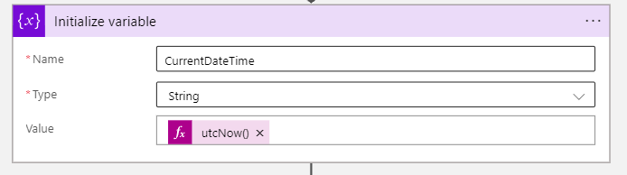We will just rename our variables to ConditionalAccessOperation and ConditionalAccessID to make it clearer, rather than using the account mapping names. Then just create a variable called CurrentDateTime using the utcNow() function, we will use this to timestamp our changes.