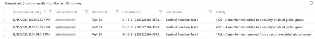 The reverse can be true too, you could have users with Azure AD privilege, but no or reduced access to on premise Active Directory. When an Azure AD admin resets a password it is logged as a ‘Reset password (by admin)’ action in Azure Sentinel, we can retrieve the actor, the target and the outcome –